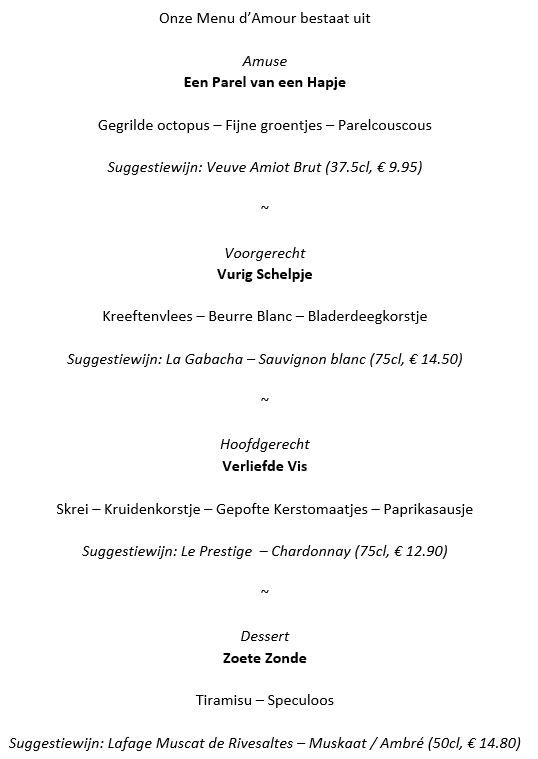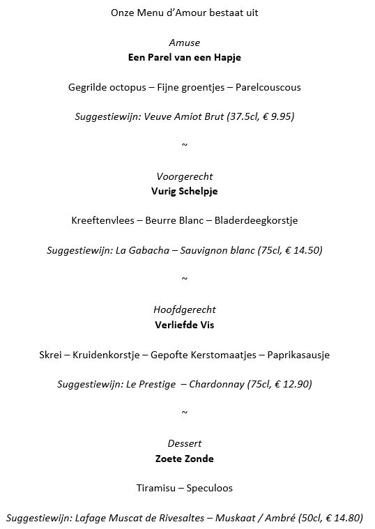 Menu’s af te halen op vrijdag 13, zaterdag 14 en zondag 15 februari vanaf 11u (zondag tot 12u)